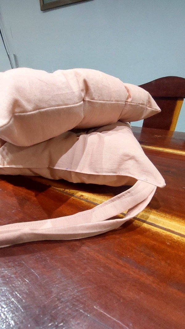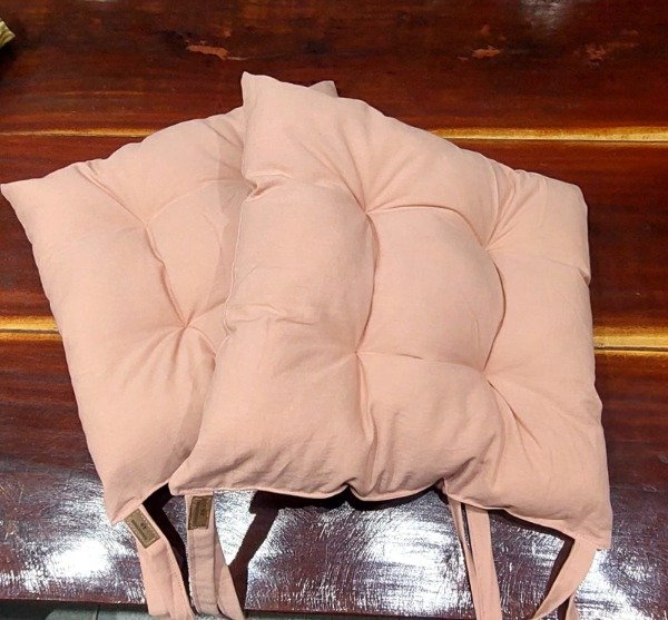 Almohadones confeccionados en tela tusor de algodón rellenos de vellón siliconado.
