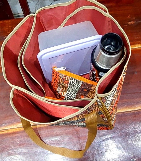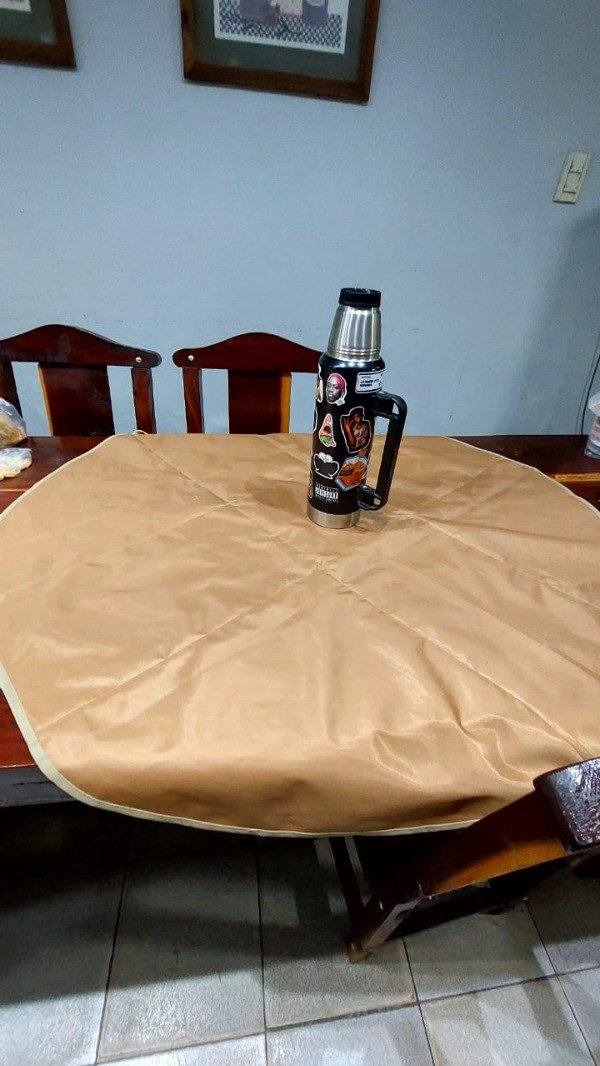 Su diseño es practico y versátil, con dos bolsillos externos, abrís los cierres y se transforma en mantel de 1 metro de diámetro, lo acompaña una yerbera  y porta mate.