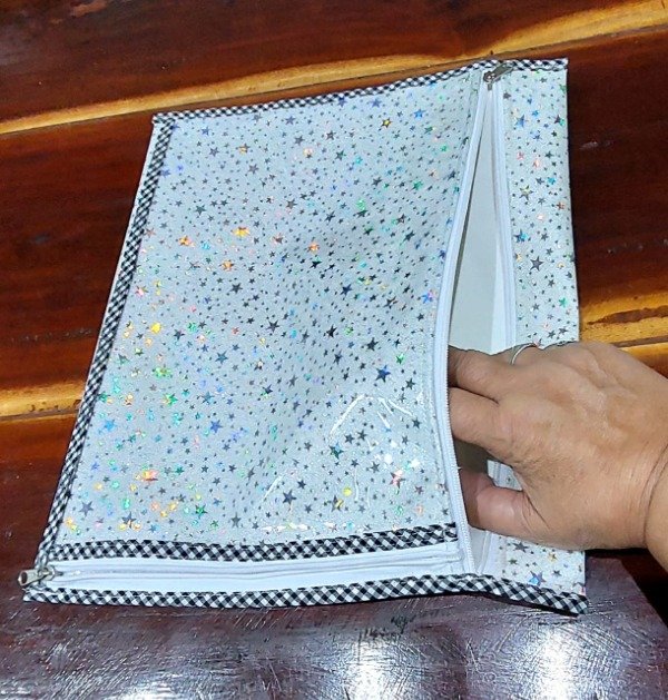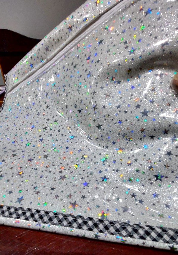 En esta ocasión lo confeccionamos en tela espejo, que es también impermeable.