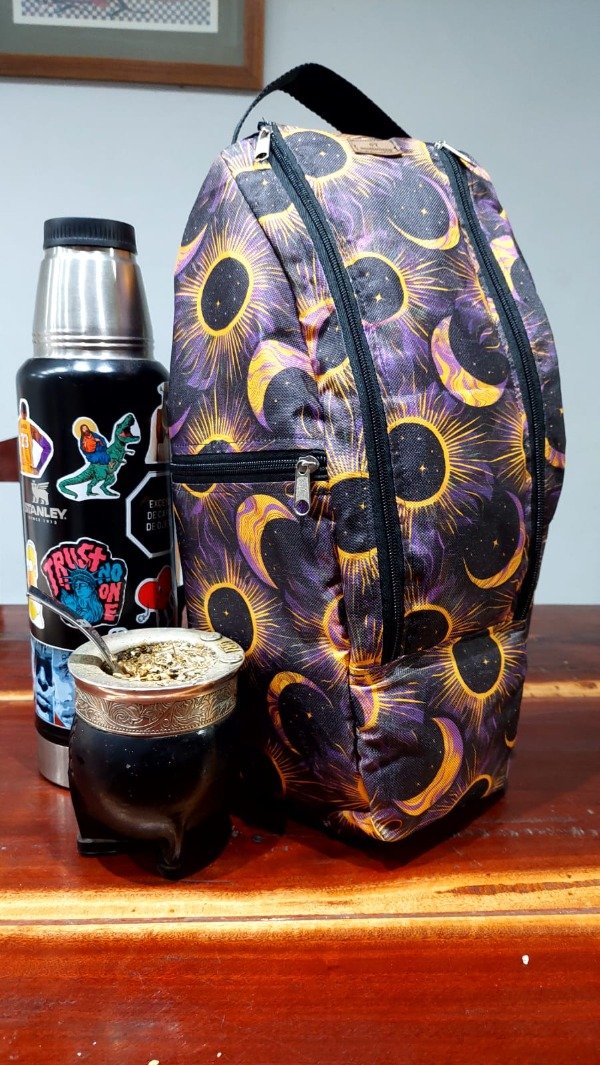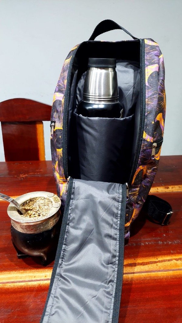 Su amplio compartimento principal posee un separador para llevar el termo sin que pierda estabilidad.
