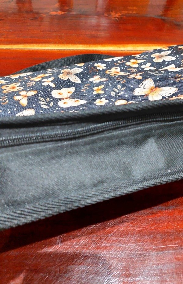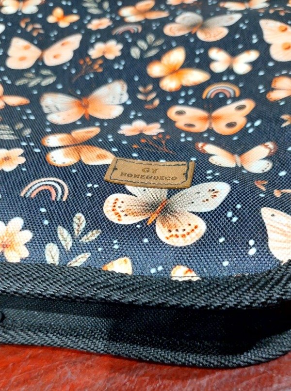 Está confeccionada por nosotras con cordura lisa y estampada en el exterior e interior, resistente al desgarro y con propiedades antimicóticas, impermeable y de fácil limpieza.