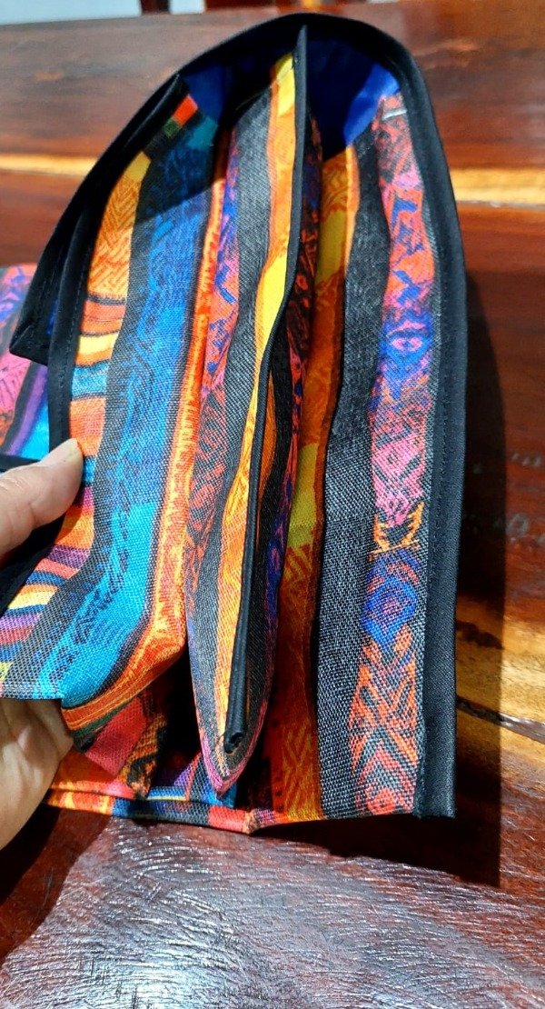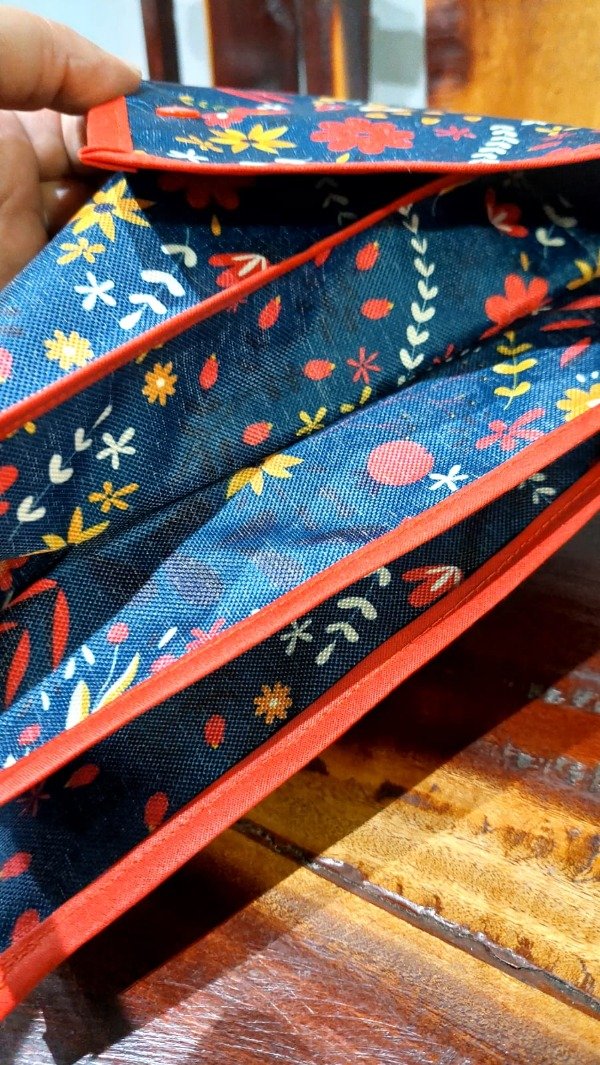 Tiene 3 bolsillos grandes con gran capacidad de guardado, hojas A4, Oficio, cuadernola, etc. y dos bolsillos más pequeños con cierre de broche.