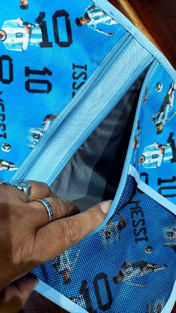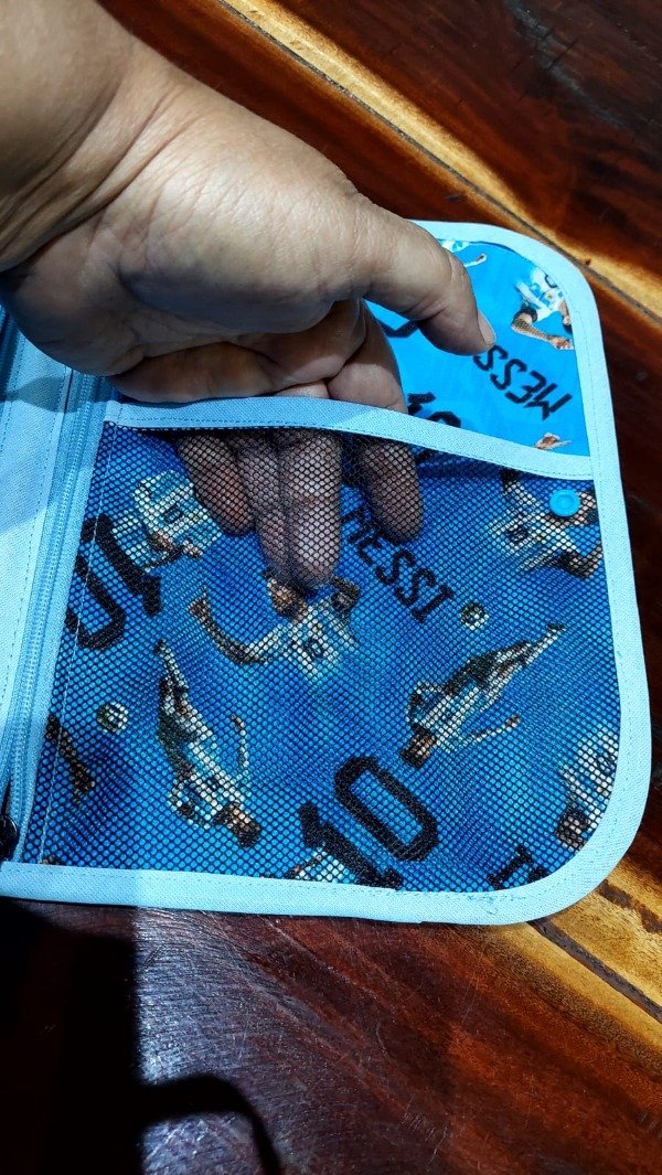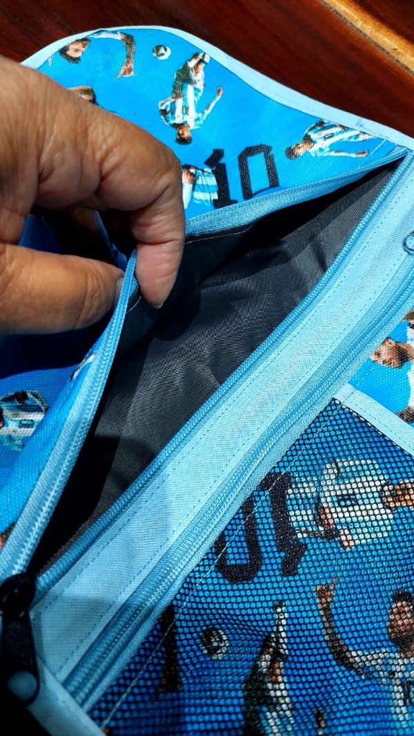 El interior del bolsillo es de tela silver, también impermeable y lavable.
